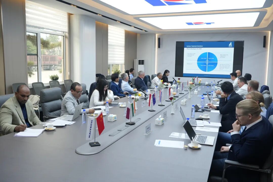 山东开泰总经理王瑞国、Airblast Group CEO Francis、Airblast荷兰公司总经理Nick、芬兰Blastman机器人公司总经理Mika、荷兰控股公司执行董事Kevin、开泰副总经理邹文文及国贸高层管理团队全程参与,与各位海外负责人进行了深入的交流。